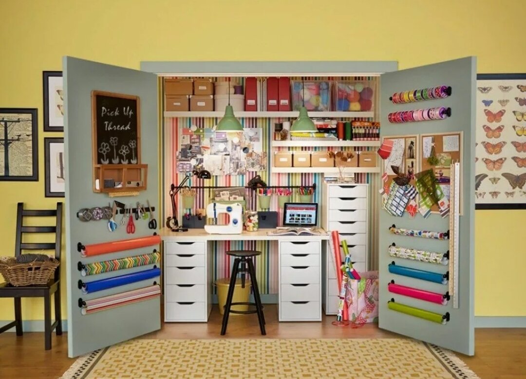Рукоделие или бардак? Да с такой проблемой я столкнулась, пока творила свои поделочки вокруг меня были и обрезки ткани и нитки, ножницы и пуговицы. Да чего там только не было всего и не перечислить, но выглядел этот творческий беспорядок ужасно. А когда пришло осознание того что мне это надо оставить в таком состоянии на пару дней вот тут я испытала шок. И поняла одну очень важную мысль, которой и хочу с вами поделиться. Творческий процесс требует не только времени, но и своего места. Так как все эти мелкие детали: ниточки различных оттенков, бусинки, пуговки, и многие другие различные материалы, которые нам жизненно необходимы для творчества. И если мы не позаботится об этом то в скорее весь наш дом будет захломлен этими лоскуточками, ленточками и бог ещё знает чем. Поэтому нужно определиться с выбором места, так как за секунду ни чего не делается и нужно учитывать, что так же понадобятся перерывы для отдыха. Да и удобнее взять нужную деталь из определённого мест