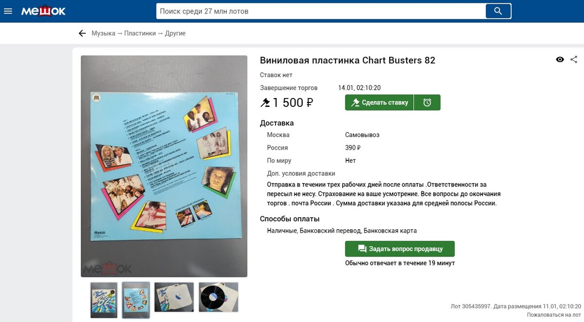 Но, помня о совете обратить внимание на другую площадку, я зашел на Мешок. Ввел в поиске “виниловые пластинки”. И тут меня постигло просто огромное разочарование – это, по сути, аукцион. Хотя некоторые лоты вроде бы можно было сразу положить в корзину. Понаблюдав некоторое время за некоторыми лотами обнаружил, что нужно постоянно следить за текущей ценой лота, особенно под занавес торгов. Это катастрофически неудобно. Вы привязаны к интернету. Так же Вы ничего не можете планировать – нет никакой гарантии, что Вы сможете купить необходимый диск. Да и цены относительно Авито в среднем выше на Мешке. Кроме того, обнаружил в описании к некоторым лотам приписки типа – если не выкупите лот в течение трех дней минус в рейтинг Вашего профиля. Причем никакие причины не принимаются во внимание. Да у меня лично была ситуация – договорился на Авито с продавцом о покупке кассет (он отложил три десятка кассет для меня) и срочно потребовались деньги на лекарства. Я просто списался с продавцом, объяснил ситуацию, нет никаких проблем. В этом плане Мешок для меня показался средневековой дикостью. Сами описания к лотам – это отдельная песня, это просто небольшое “литературное произведение” судя по его размерам. Я почитал несколько описаний и просто бросил эту затею (некоторые особо одаренные личности даже писали про статью 458 Гражданского кодекса РФ, когда давали описание условий доставки).