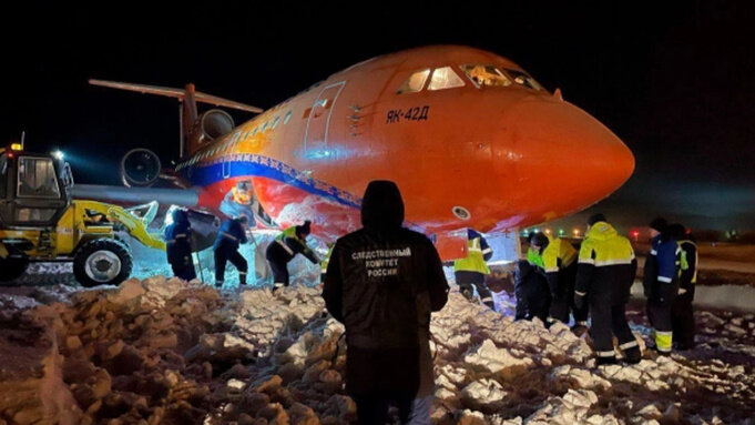 Произошедшее классифицировали как серьезный авиаинцидент В аэропорту Архангельска пассажирский самолет Як-42 выкатился за пределы взлетной полосы, прилетевший с острова Новая Земля. Об этом сообщили в Западном межрегиональном следственном управлении на транспорте СК. "Вечером 12 января поступило сообщение о том, что в аэропорту Талаги города Архангельска воздушное судно Як-42 сообщением Амдерма 2 – Талаги при посадке выкатилось за пределы взлетно-посадочной полосы. Пострадавших нет", – рассказали в ведомстве. Следователи начали доследственную проверку на основании уголовной статьи о нарушении правил безопасности движения и эксплуатации воздушного транспорта. Пресс-секретарь Росавиации Артем Кореняко уточнил, что аэропорт из-за случившегося был временно закрыт. На борту в момент происшествия были 5 членов экипажа и 54 пассажира. Никто из них не пострадал. Самолет, по предварительным данным, видимых повреждений не получил, но застрял в снегу. Позднее его отбуксировали на стоянку. Произош