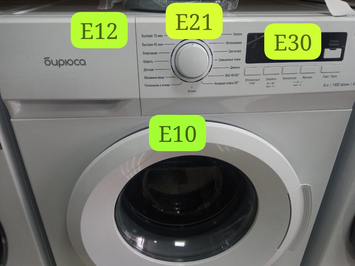 Машинки оборудованные электронным дисплеем высвечивают следующие ошибки