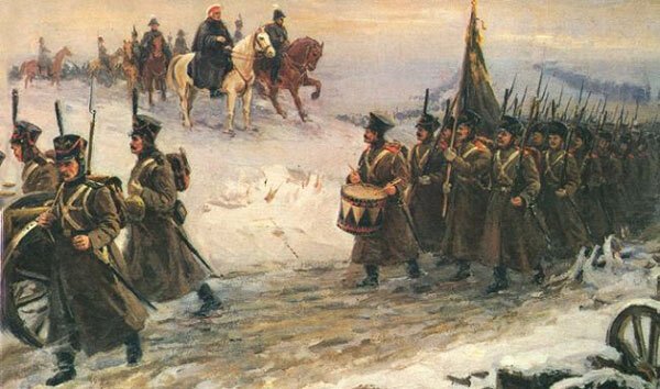 13 января 1813 года русская армия пересекла реку Неман — границу Российской империи. Незадолго до этого солдаты, окончившие кампанию 1812 года под командованием Михаила Кутузова, зимовали неподалёку от Вильно. В это же время рядом с Литвой казаки успешно продолжали биться с остатками войск Наполеона Бонапарта.