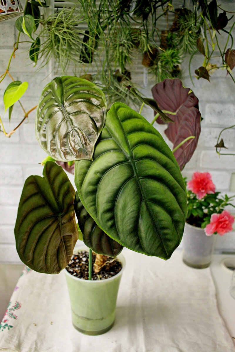 Бархатистая темная листовая пластина. О, как я мечтала о ней и любила за ее контраст возле других алоказий. Но со временем любовь прошла.