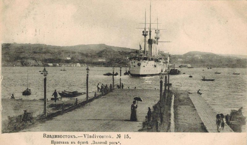 Это была парадная пристань Владивостока. Находилась она между современным 35 и 36 причалами. Отсюда любой желающий мог взять морское такси на другую сторону бухты или на острова.