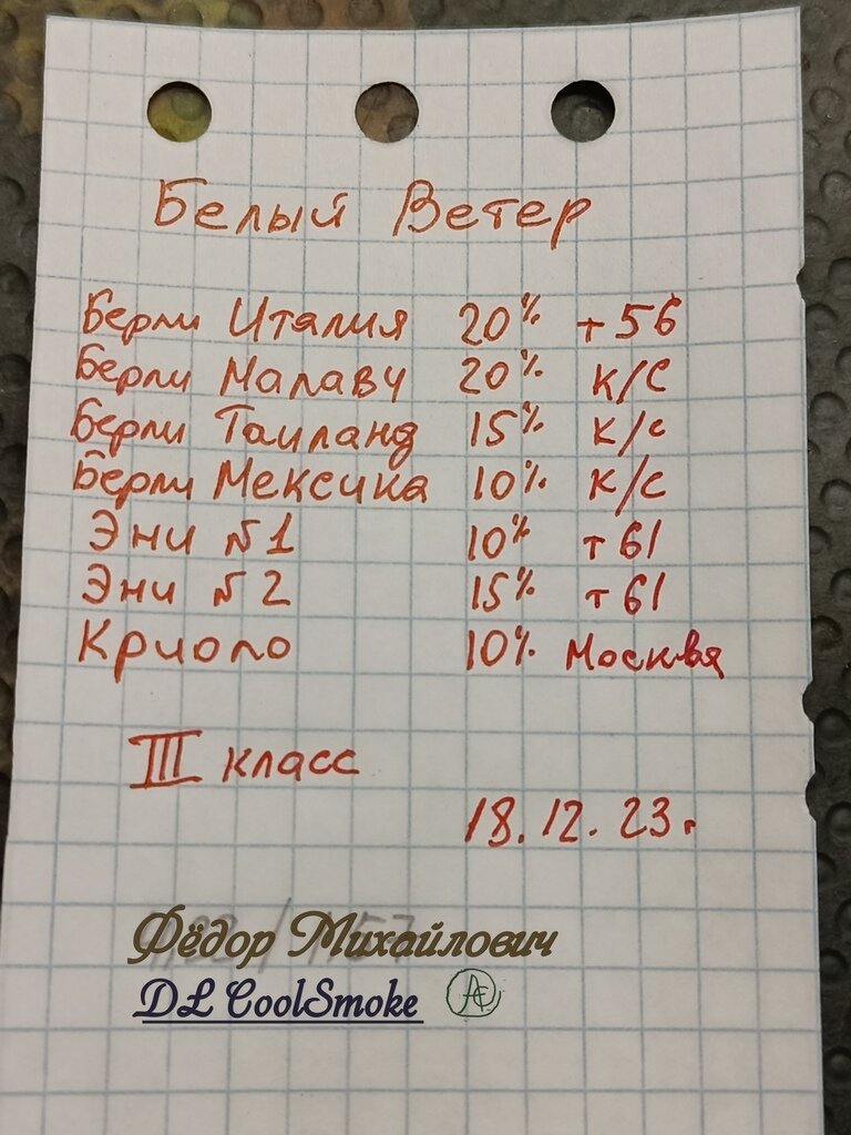 Сегодня напишу рецепт мешки, которую НЕ РЕКОМЕНДУЮ большинству, она подойдёт любителям крепких табаков. Белый Ветер, мешка 3 класса.