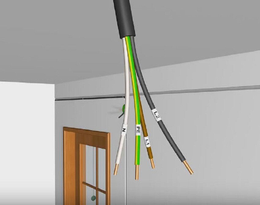 Чаще всего из потолка выходит три провода или же один провод с тремя различными жилами. Если дом новой постройки, решив подключить люстру, вместо трех в потолке можно обнаружить четыре проводника. Это свидетельство того, что проводка проложена по евростандарту, и один из имеющихся проводов – это «земля». Как правило, такие провода являются желтыми и снабжены продольной зеленоватой полосой.