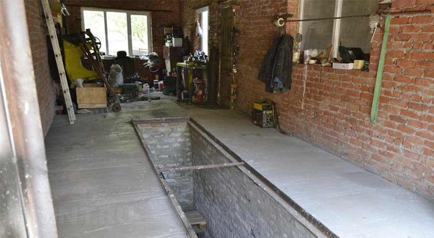 Крайне полезный элемент смотровой ямы — поворотная часть сбоку, где размещены ступени для спуска. Существует мнение, что именно Г-образной формы яма и должна быть изначально: более удобный вход и возможность сократить длину ямы в небольшом гараже.