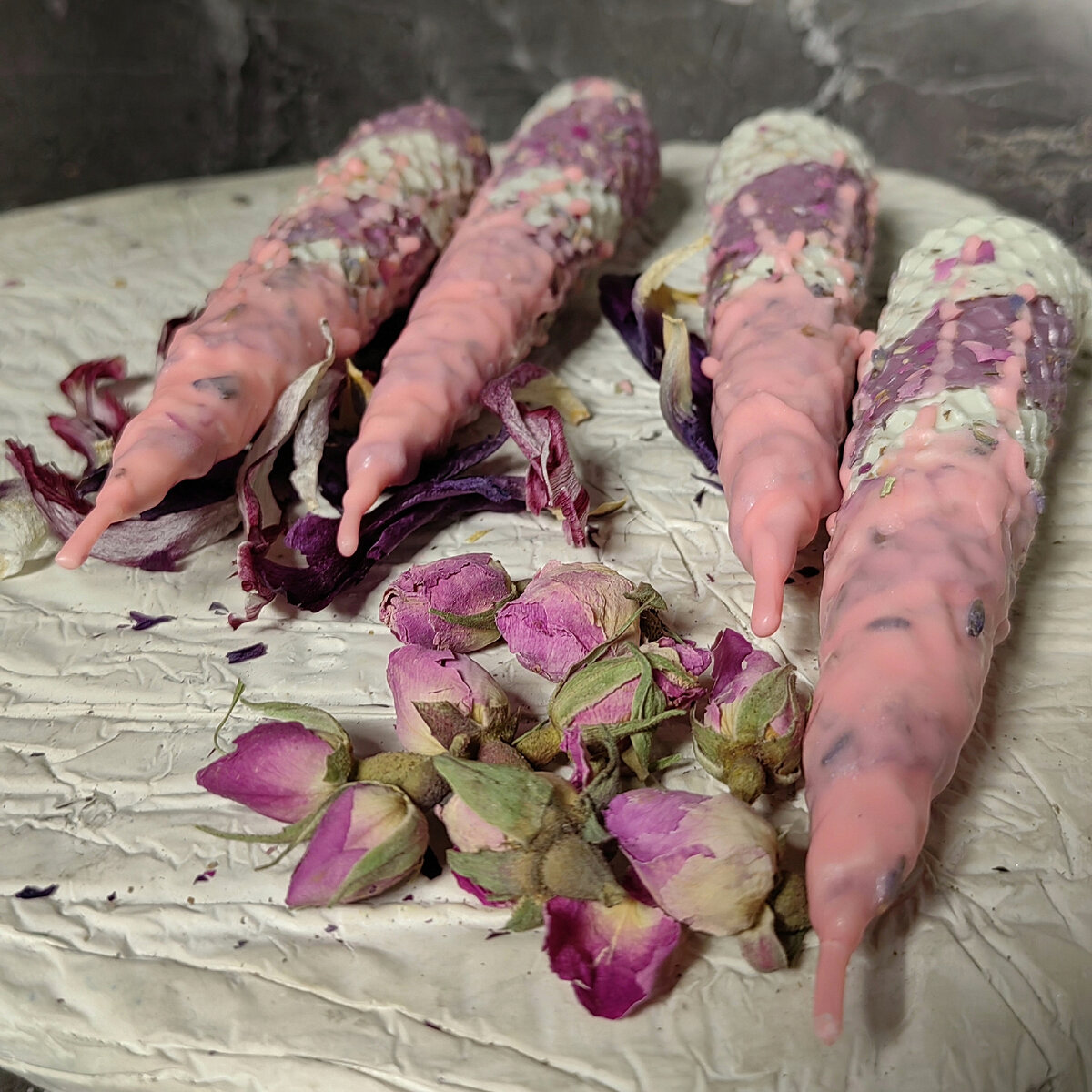 В состав свечи входят три вида трав: роза, тюльпан и лаванда. Каждая трава имеет свои свойства и аромат, которые воздействуют на ваше подсознание и эмоции. Роза - это цветок нежности, чуткости и любви. Она усиливает вашу привлекательность и дарит вам гармонию. Роза также помогает вам открыть свое сердце для любви, принять и ценить себя и других. Тюльпан - это цветок сексуальности, энергии и страсти. Он разжигает в вас огонь желания и делает вас неотразимыми. Тюльпан также помогает вам выражать свои чувства, укреплять свои отношения и получать удовольствие от жизни. Лаванда - это цветок успокоения нервной системы и снижения тревожности. Она расслабляет вас и устраняет негативные мысли и эмоции. Лаванда также помогает вам найти внутренний покой, доверять себе и судьбе, и быть счастливыми.