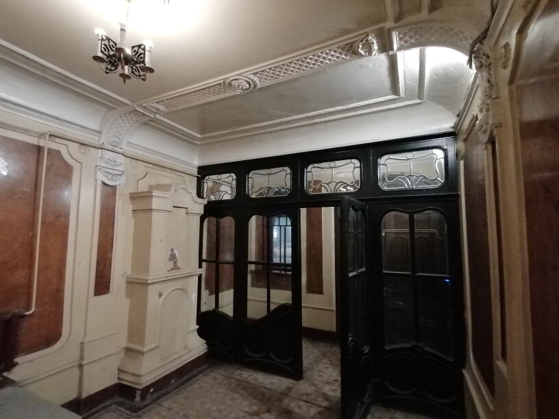 И невозможно не оценить удивительные формы лестниц, их роскошные чугунные перила, изящные изгибы спиральных пролетов, поблекшие детали витражей на окнах.