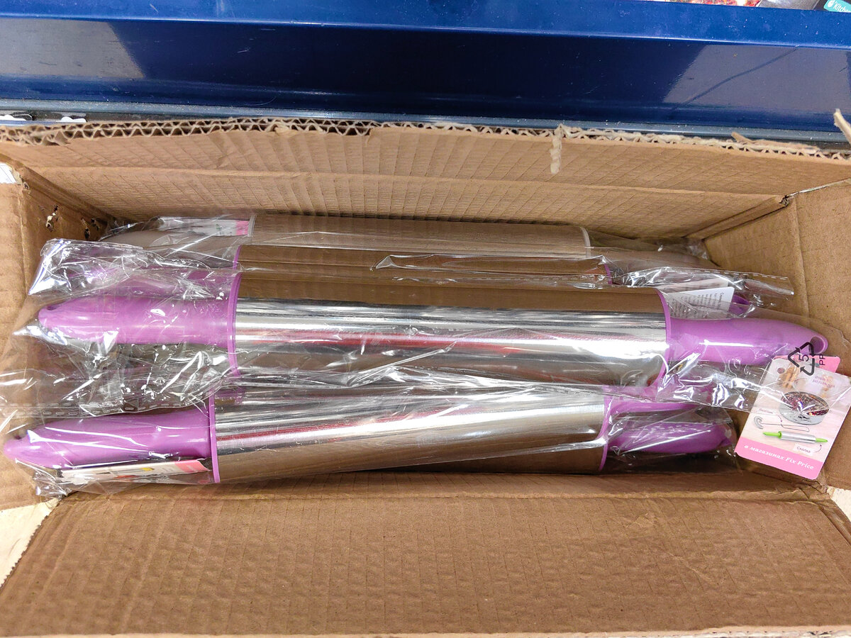 Взяла из коробки, покрутила в руках. Стало более-менее понятно, что это такое. Хозяйки сразу узнают. Скалка, да не простая. Вращающая часть из нержавеющей стали.