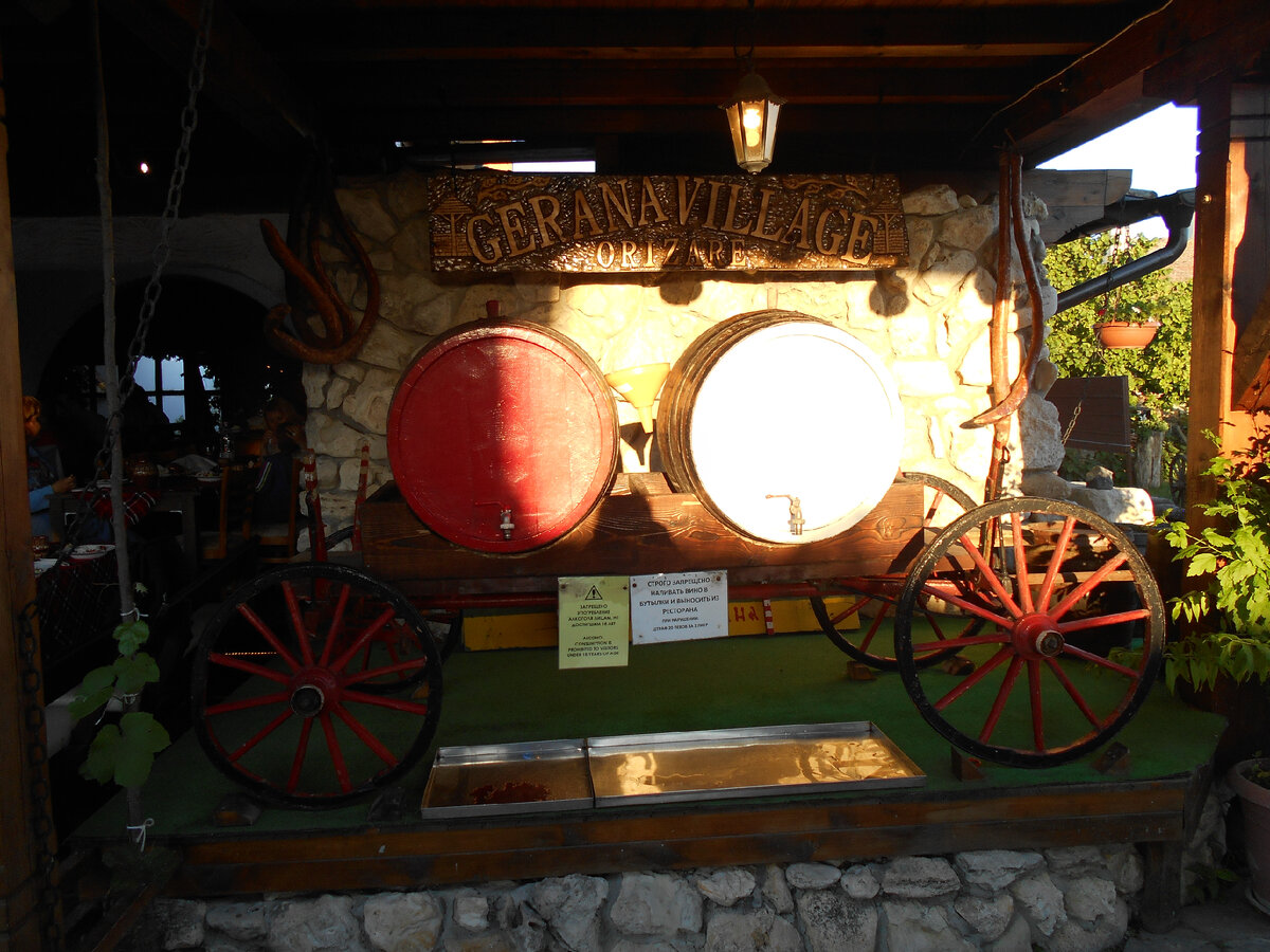 Большая зона для принятия пищи и просмотра шоу программы под названием Народные танцы. Еда была вкусная и сытная, состояла из нескольких блюд: первое, второе, салат, компот а вино лилось нескончаемым потоком из двух бочек с пометками Красное и Белое (теперь поняли для чего надо записывать номер автобуса). Танцы были прекрасны, музыка громкой. Но это надо видеть, но не в этот раз- не заснял, только фото. Подробнее об экскурсии: