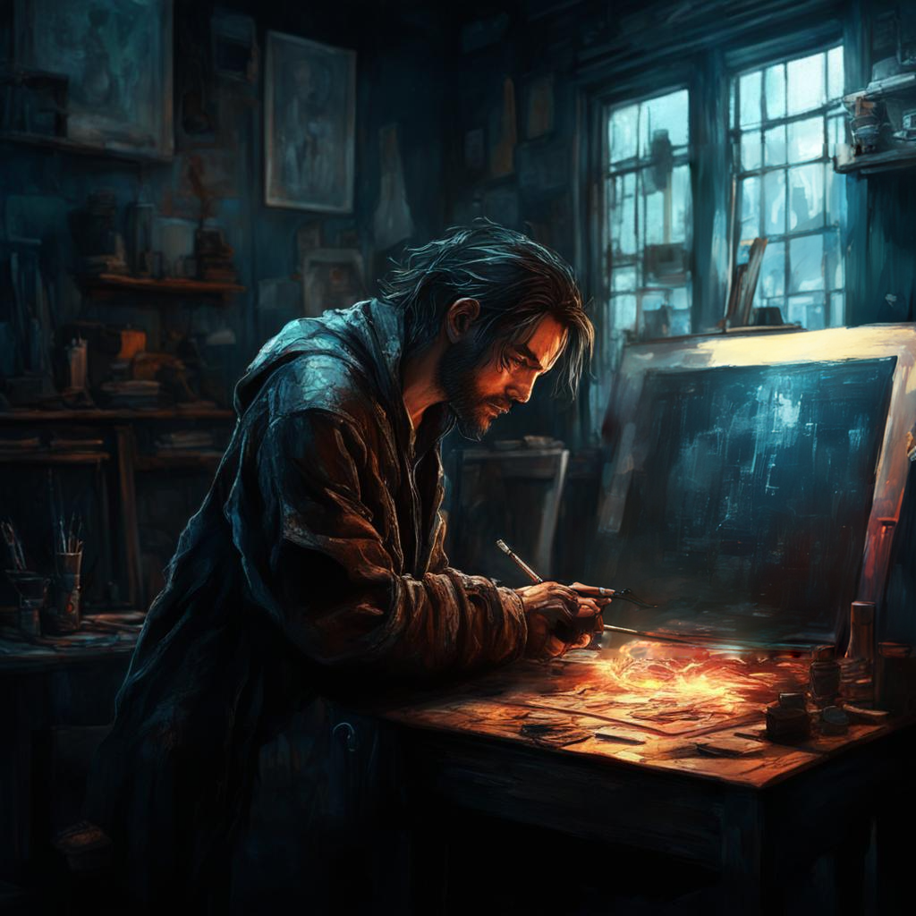 Я всегда любил рисовать и с детства мечтал стать художником. Но моя мечта не сбылась. Я стал обычным офисным работником, который рисовал только по вечерам, когда возвращался домой, уставший и разочарованный. Все изменилось, когда я переехал в старый дом на окраине города. Купил его за смешную цену, потому что он был в ужасном состоянии. Я решил отремонтировать его и сделать своим уютным убежищем, где смог бы посвятить больше времени своему рисованию, отдохнуть от суеты и стресса. Однажды я спустился в подвал, чтобы посмотреть, что там есть. И нашел в нем много старого хлама, покрытого пылью и паутиной. Я начал выбрасывать его, чтобы освободить место. Но среди всего этого мусора заметил что-то, что привлекло мое внимание. Это была старая кисточка, сделанная из черных волос. Она лежала на полке, рядом с холстом, на котором был нарисован непонятный символ. Я взял кисточку в руку и почувствовал, что она теплая и мягкая. После этого решил попробовать ее на холсте, который лежал рядом. Сна