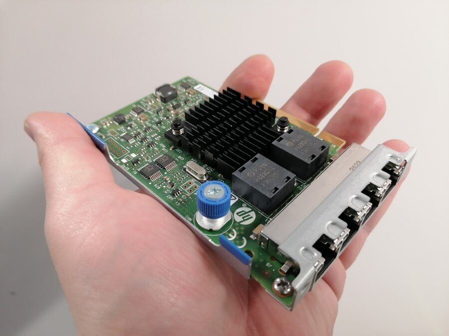 Устанавливаю модуль 366FLR в сервер HPE Proliant DL360 Gen10. Модуль подойдёт для Gen8 и Gen9. Адаптер позволяет добавить ещё 4 гигабиных Ethernet порта нашему серверу.