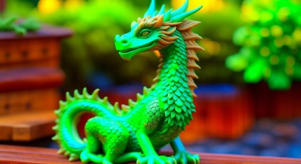 - · В китайской традиции дерево считается элементом роста, успеха и развития. Энергия Деревянного Дракона по традиции окрашена в зеленый цвет – он символизирует процветание, гармонию, перемены к лучшему. В 2024 году зеленый окрас животного, как и стихия – дерево, характеризует его крайне положительно. Это самый спокойный и уравновешенный из всех Драконов.