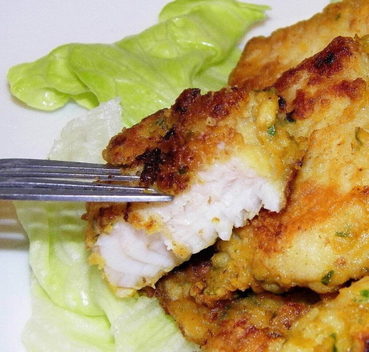Ингредиенты: 1 кг рыбного филе 1 кг картофеля 50 гр. сыра 2 яичных белка 2 ст. л. муки соль перец молотый черный растительное масло Приготовление: 1. Рыбное филе вымыть и обсушить бумажным полотенцем. 2. В миске смешать муку, соль и молотый перец. 3. Картофель вымыть и почистить. Натереть картофель на терке. Половину на мелкой, вторую на крупной. Отжать руками, чтобы ушла лишняя влага. Можно добавить 1-2 ч.л. сока лимона, чтобы меньше окислялась и темнела картофельная масса. 4. Сыр натереть на средней терке. 5. Смешать натертый картофель, сыр и яичный белок. Добавить немного соли. 6. Рыбные филе промокнуть бумажными салфетками и запанировать в муке, затем облепить тертой картошкой. 7. Влить в сковороду растительное масло так, чтобы оно покрыло дно тонким слоем. Обжарить рыбу с двух сторон на растительном масле до золотистой корочки. Когда с одной стороны корочка подрумянится, перевернуть на другую. Время жарки примерно по 5-7 минут с каждой стороны. Жареную рыбу