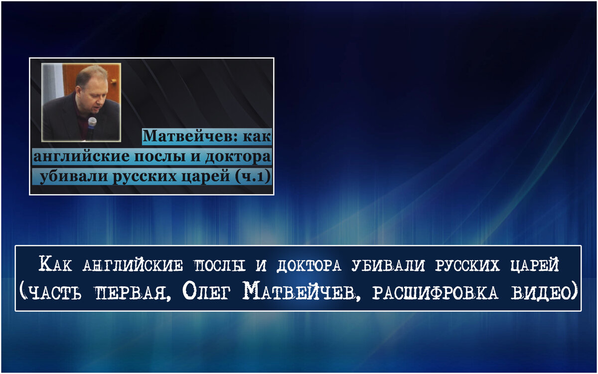 После того, как у них все революции закончились, после того, как всё у них более-менее стало становиться на ноги, собственно говоря, с Петра и после Петра начинается всё с сначала. В следующем веке – об этом я в следующий раз буду рассказывать – у них и послы занимались убийствами наших царей, и врачи занимались убийствами наших царей и императоров. Всё продолжается, у большинства наших царей все эти лекари были, опять-таки, англичанами, то есть традиция все время нас лечить, травить и всё у нас с помощью докторов узнавать осталась. Я заранее анонсирую, чтобы было интересно посмотреть вторую серию про эти отравления и убийства. Ждите следующей серии.