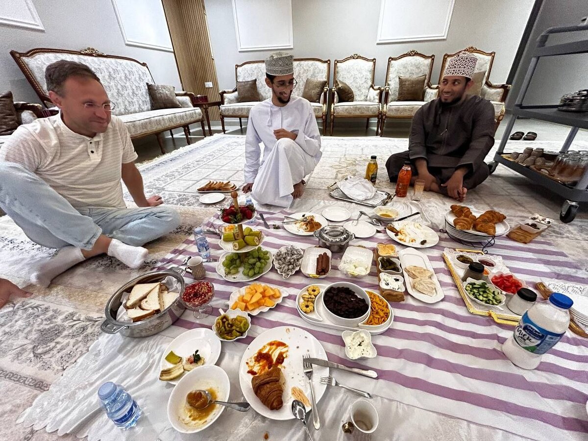 За время визитов и жизни в Омане мы посетили порядочное количество столовых и вывели одно безошибочное суждение: если вам говорят, что порция небольшая, нежирная или неострая, то это не что иное, как ложь, враньё и провокация. Бывают исключения. В некоторых ресторанах, где ужин на двоих стоит от 10 тыс. руб., можно насладиться околоевропейскими блюдами. Но, что характерно, даже за такие деньги очень редко встретишь хороший мясной сочный стейк или нормальную яичницу с жидким желтком. Поэтому мы освоили азы кулинарии и готовим дома (к счастью, в супермаркете широкий ассортимент хлопьев с молоком). Вместе с тем не оставляем попытки найти что-то съедобное: пюре с котлеткой, куриный бульон, домашние пельмешки... Но пока самыми яркими гастрономическими впечатлениями остаются: 1. традиционное угощение - холодная каша (полагаю, геркулесовая) 2. верблюд (говорят, очень полезное мясо с низким уровнем холестерина) 3. сушеная акула (закусочка, как вобла в России) Но это экзотика, для любителей экс