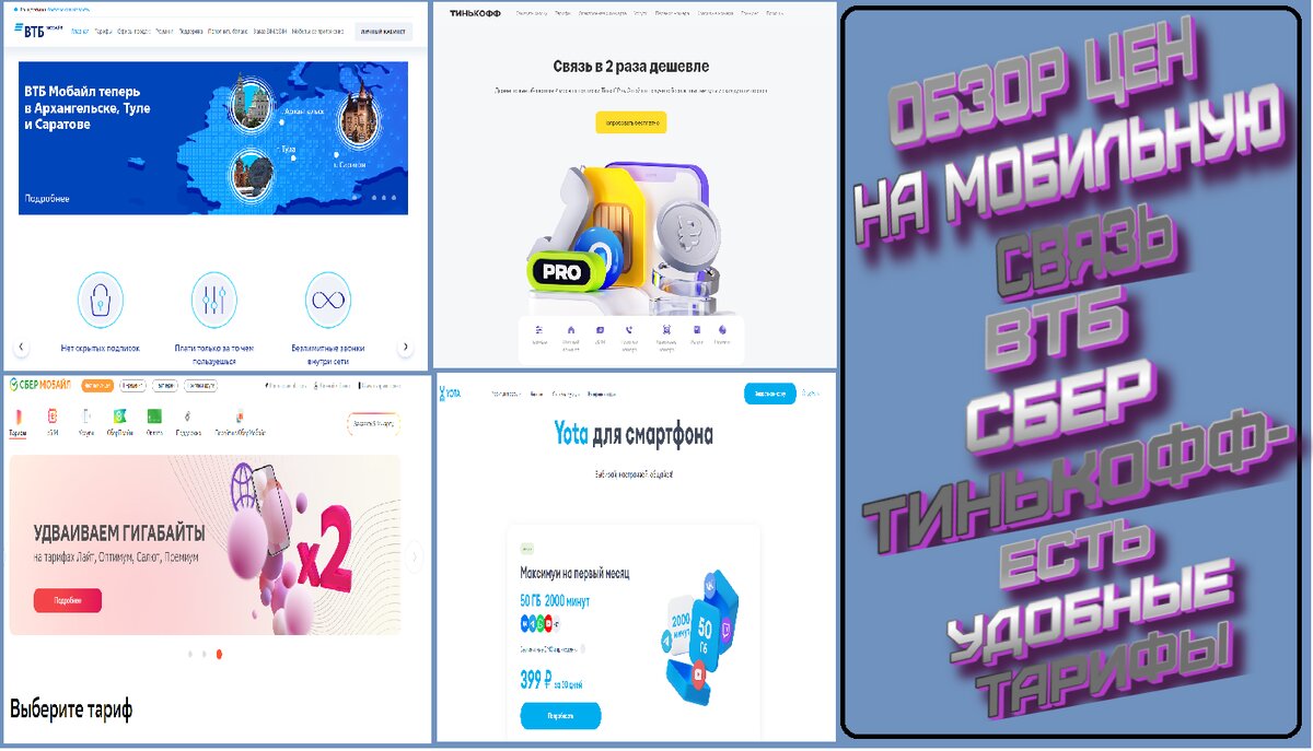 Обзор цен на мобильную связь ВТБ,СБЕР,ТИНЬКОФФ-есть удобные тарифы .