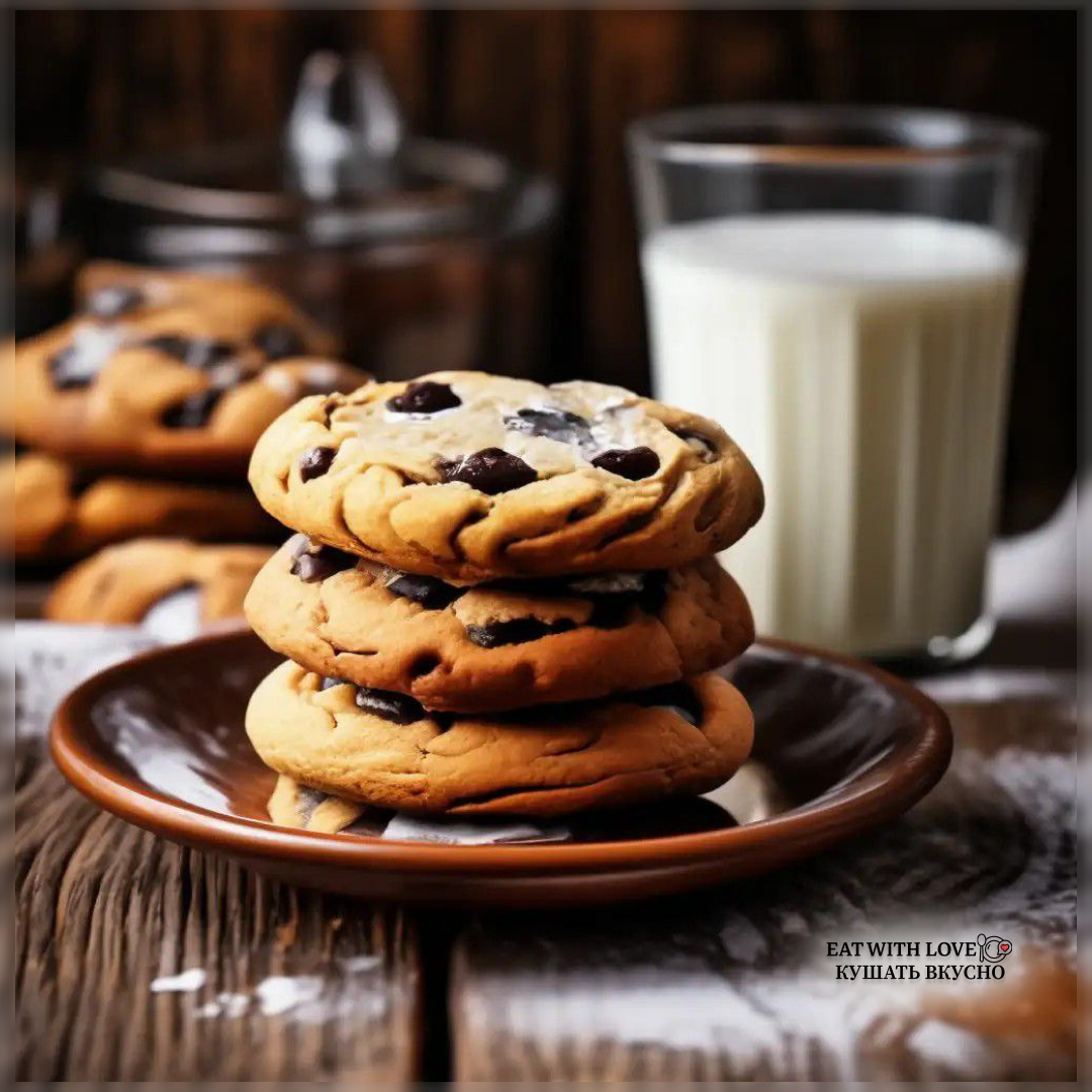 Ингредиенты: -115 гр. сливочного масла -190 гр. сахара коричневого -1 шт. яйца -245 гр. муки -1 ст.л. кукурузного крахмала -1 ч.л. разрыхлителя -щепотка соли -60 гр. грецких орехов -200 гр. шоколада Способ приготовления: -Берем сливочного масло взбиваем с сахаром -Кладем яйцо взбиваем -Добавляем муку, кукурузный крахмал, разрыхлитель, соль: замешиваем тесто -Дальше грецкие орехи и шоколад: соединяем с тестом -Лепим печенье около 100 грамм, убираем в холодильник на 1 час -Выпекаем 17-20 минут при 170 градусах Печенье готово, берем стакан молока и наслаждаемся ❤️