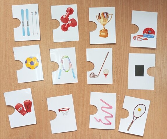 Я распечатываю картинки на фотобумаге размером 10х15 см. Образцы приведены ниже. Разрезаю их по центральной кривой линии. На магнитную доску вывешиваются изображения детей, занимающихся различными видами спорта. На обратной стороне каждой картинки приклеен виниловый магнит на липкой основе Я вывешиваю изображения детей в столбик, друг под другом. Рядом на столе или на подносе выкладываю изображения спортивных атрибутов. Задача участников путешествия – подобрать соответствующий спортивный инвентарь (вторую половинку из пары картинок) А это картинки для печати. Если вам понравился мой материал ставьте "лайк", и подписывайтесь на канал "Золушка - хобби". Регулярно появляется новый материал. Смотрите – не пропустите!