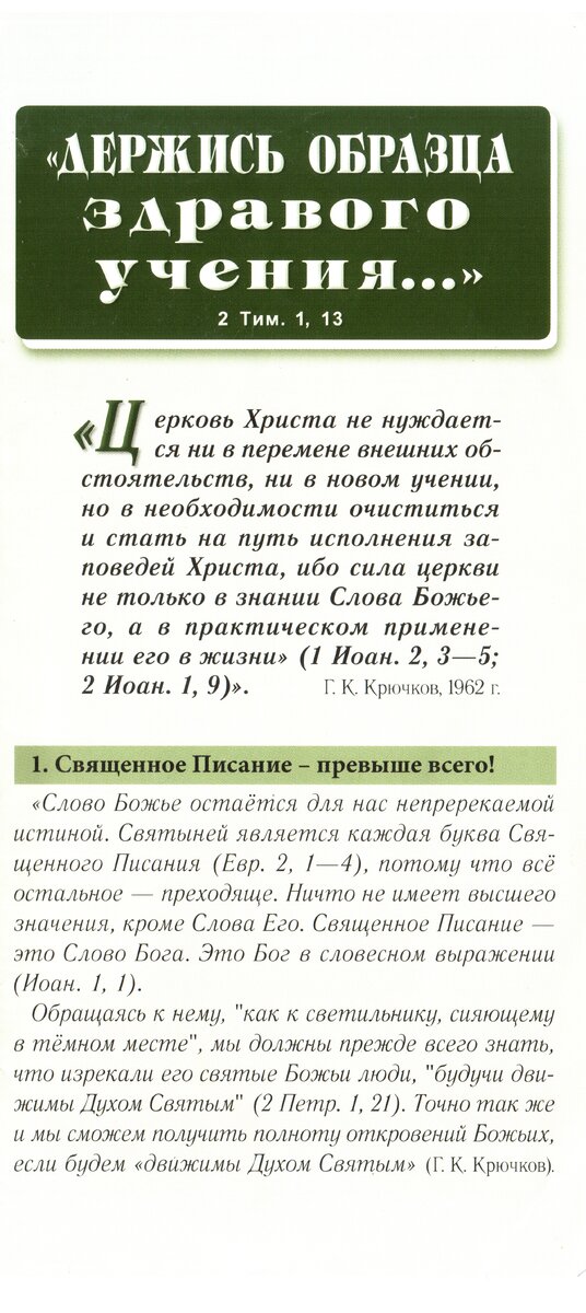 Держись оброзца здравого учения . Буклет .