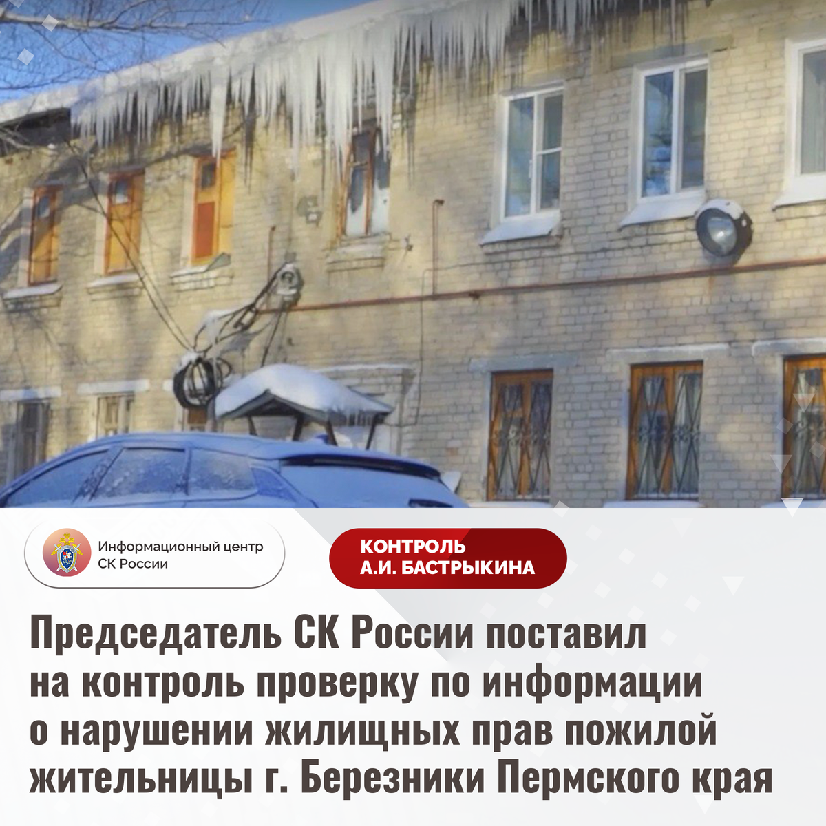 Председатель СК России поставил на контроль проверку по информации о нарушении жилищных прав пожилой жительницы г. Березники Пермского края