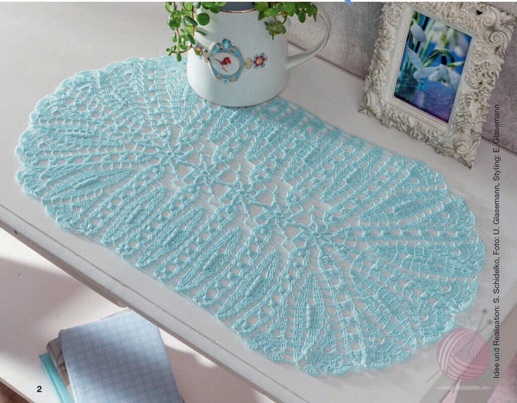 Приветствую всех рукодельниц! Сегодня предлагаю вам 3 модели салфеток, которые я подобрала для вас из новых номеров журнала Crochet World spring 2024 и Häkeln kreativ 1/2024 . Еще несколько моделей и схем вы можете посмотреть а моем сайте Голубая овальная салфетка крючком Размер: примерно 33 x 57 см Материал: около 70 г пряжи цвета ледяной голубицы (цвет 8168) - Elisa 10" (100% хлопок, длина нити 280 м/50 г) от LANGENDORF & KELLER, 1 крючок ADDI № 1,5-1,75. Выполнение: для первого цветочного мотива наберите 8 воздушных петель и закройте их 1 соединительным столбиком. Выполните 4 воздушные петли в качестве замены для 1-го двойного столбика, затем продолжайте вязать по схеме, начиная каждый круг с количества воздушных петель, указанного на схеме, и заканчивая 1 соединительным столбиком. По завершении 2-го круга первый мотив готов. Начиная со второго мотива, как показано, соединяйте их 1 столбиком к предыдущему мотиву. Для начала 3-го круга начните с 1 соединительного столбика и вяжите