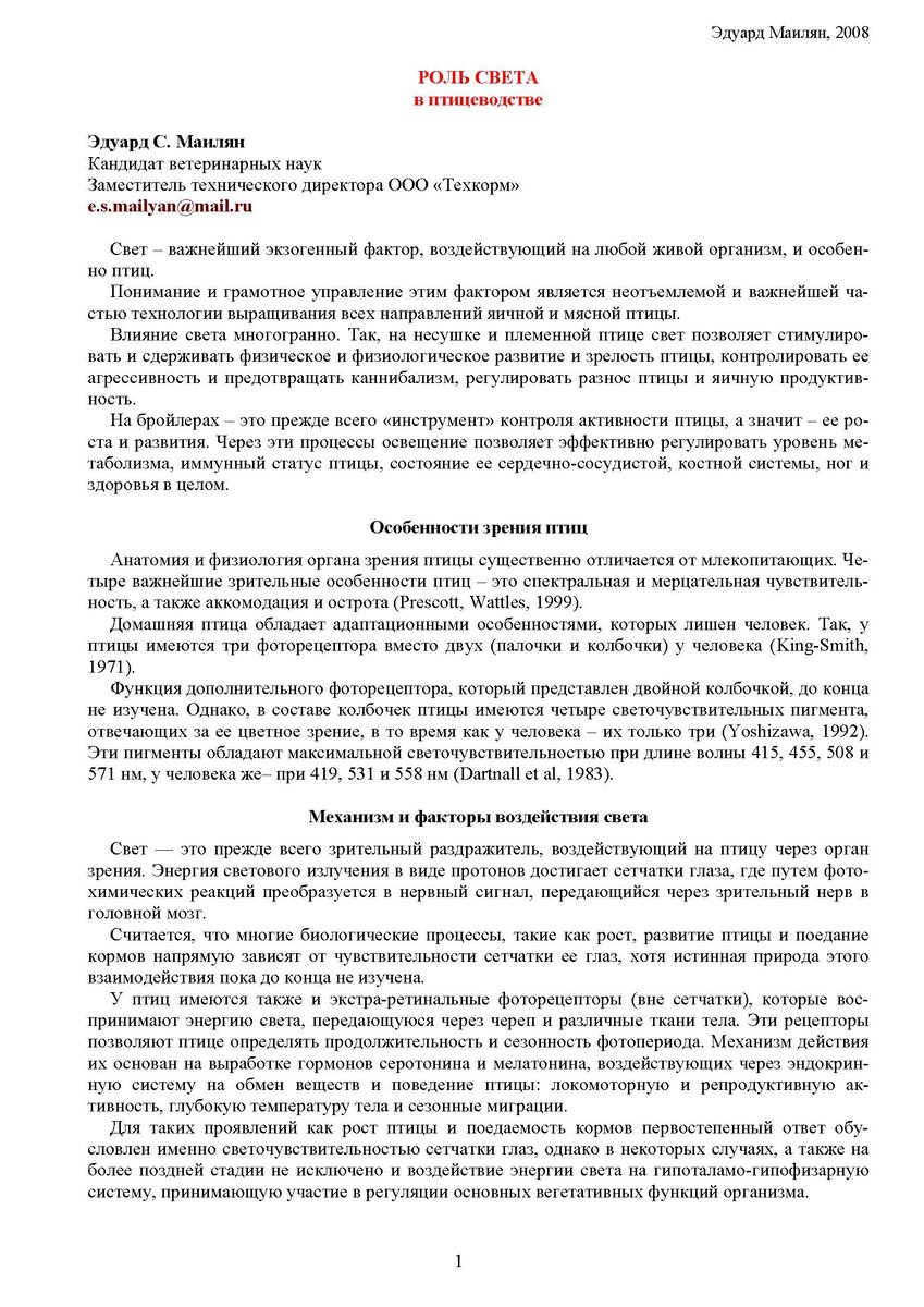 Роль света в птицеводстве, 2008
