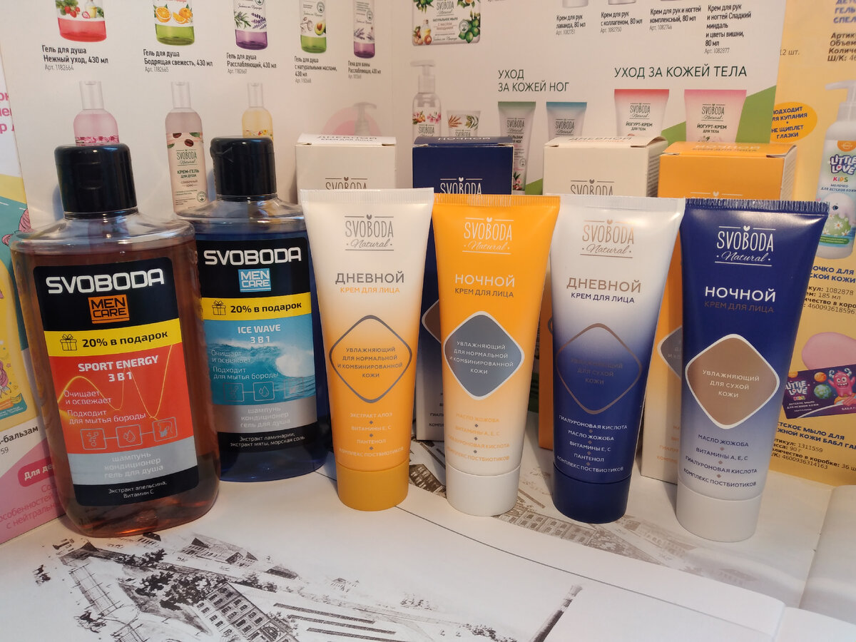 Пожелаю себе, чтобы мне подошли все 4 крема, и пойду первый раз нанесу ночной увлажняющий крем серии Svoboda Natural для сухой кожи не руку, а на лицо.
