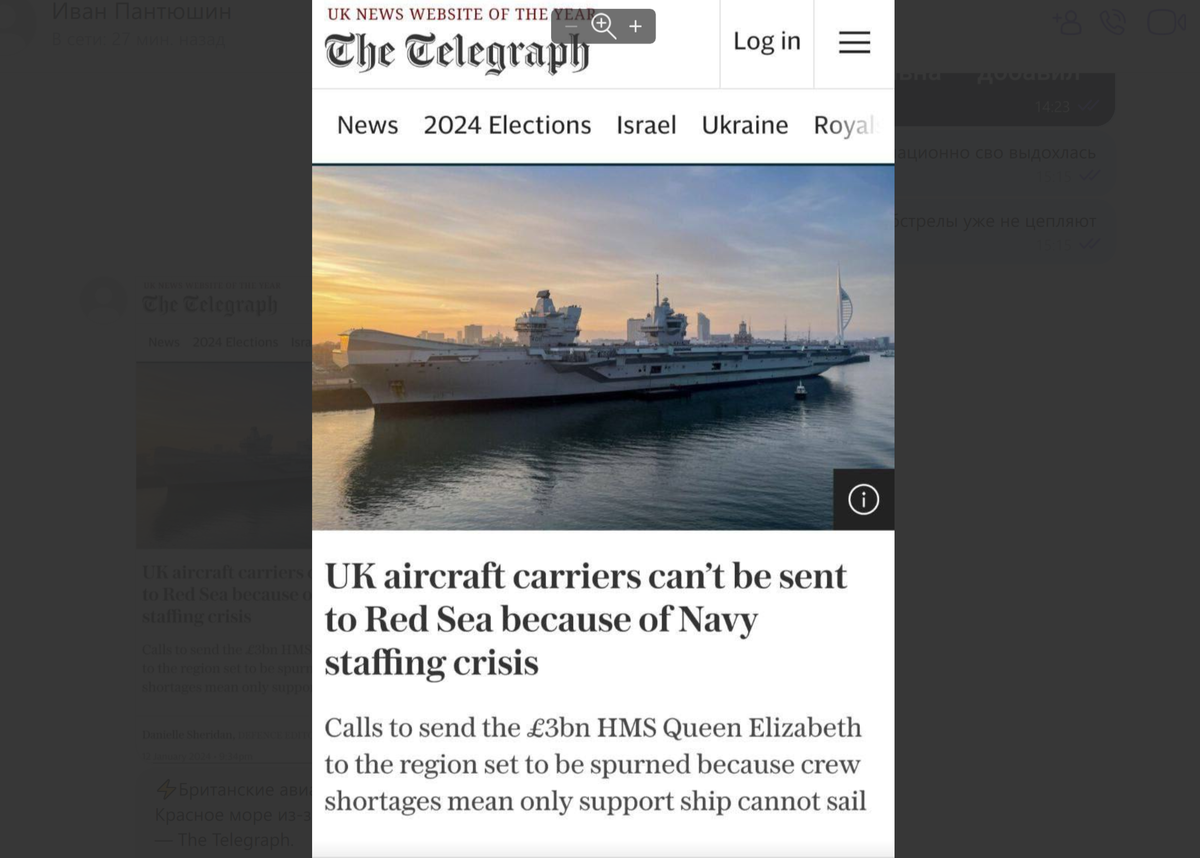 Американо-английская коалиция продолжает пастись в акватории Красного моря, но вот "ударные операции" со вчерашнего дня американцы осуществляют в гордом одиночестве. Официально не уточняют с чем это связано, однако пару дней назад авторитетная и древняя газета The Telegraph поделилась с читателями сообщением о том, что британцы, к сожалению, не могут направить свои авианосцы в район проведения операции в Красном море... из-за кадрового кризиса в ВМФ Британии.
