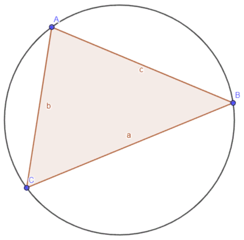Если известны две стороны и угол между ними (например стороны a, b и ∠C) Нужен радиус описанной окружности. При таких входных данных следует начать с теоремы косинусов извлекём, шучу, извлечём квадратные корни из "права" и из "лева" (из справа от равно и из слева от равно), получаем Поскольку теперь нам известны три стороны (a, b и c) и сторона и противолежащий угол (c и ∠C), дальше два пути. Либо либо Всё просто!