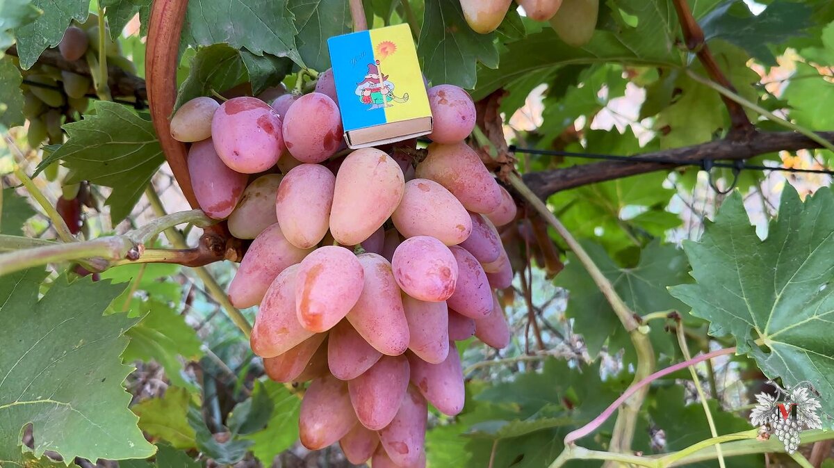 В данном выпуске я расскажу Вам об одной из самых крупных гибридных форм у меня на винограднике. А именно, я расскажу Вам об урожае и особенностях винограда Бонапарт. Плюс ко всему мы проведём контрольное взвешивание и замеры гроздей и ягод этого сорта винограда. Данная гибридная форма винограда была выведена известным селекционером Сергеем Эдуардовичем Гусевым. Получена она была путем скрещивания винограда Юбилей Новочеркасска и винограда Монарх. В результате мы имеем виноград Бонапарт со средним сроком созревания. Остатки урожая данной гибридной формы винограда я собирал 29 сентября (виноград немного перевесел). Ярких красок ягода не набрала так, грозди находились в затенении. Но всё это с лихвой может компенсировать размер ягод этого винограда, а он просто впечатляет. Средний вес одной ягоды колеблется в пределах от 20 до 25 грамм. Длинна ягоды составляет от 45 до 55 миллиметров (смотрите фото ниже). Вес самой крупной ягоды у меня на грозди винограда Бонапарт составил 33,33 грамма