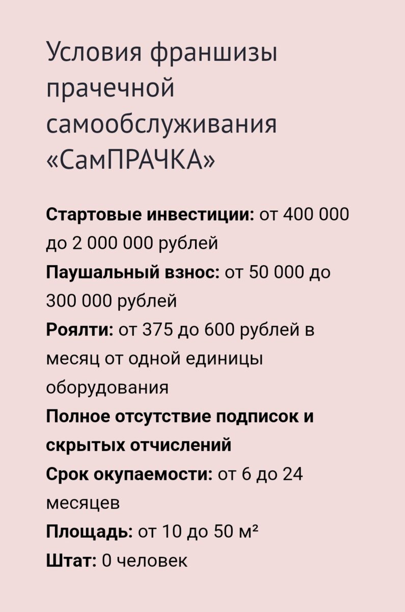 Выбор франшизы прачечной самообслуживания — безопасный вариант. Вы приобретаете готовую бизнес-модель, где все ясно: как начать бизнес с нуля, как привлекать и обслуживать клиентов, где приобретать запасные части, как настроить работу терминала приема денежных средств и автозапуска стиральных машин, как запустить эквайринг и инкассацию денежных средств. Кроме того, вы получаете узнаваемый бренд, который помогает привлекать клиентов. Очень выгодны моменты автоматизации: здесь не нужен персонал, все автоматизировано, в бизнесе нет сезонности, и эти услуги востребованы у потребителей.