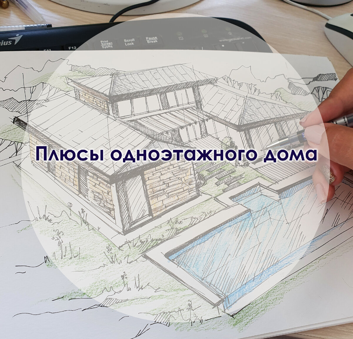 В настоящее время работаю над проектом одноэтажного жилого дома. Как же долго я ждала заказчика с такими запросами! Да ещё и в внутренним двориком! Сам проект ещё в процессе, пока есть только наброски. Одноэтажный дом-тема очень интересная и обширная. Я уже публиковала статью об американском архитекторе Ф.Л. Райте и его «домах прерий» - идея и эстетика американских одноэтажных домов - фишка его проектов. (Кому интересная эта тема, настоятельно рекомендую ознакомиться.)
