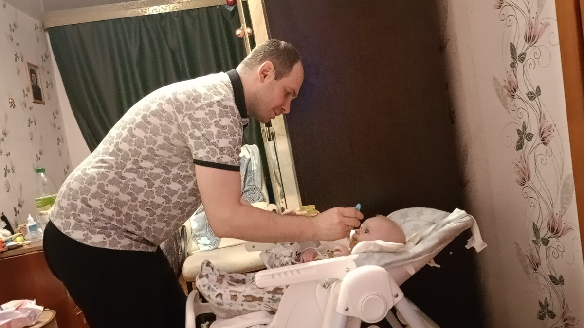 Седьмой день прикорма. Папа впервые кормит сынульку из ложечки. Работа подсознания.