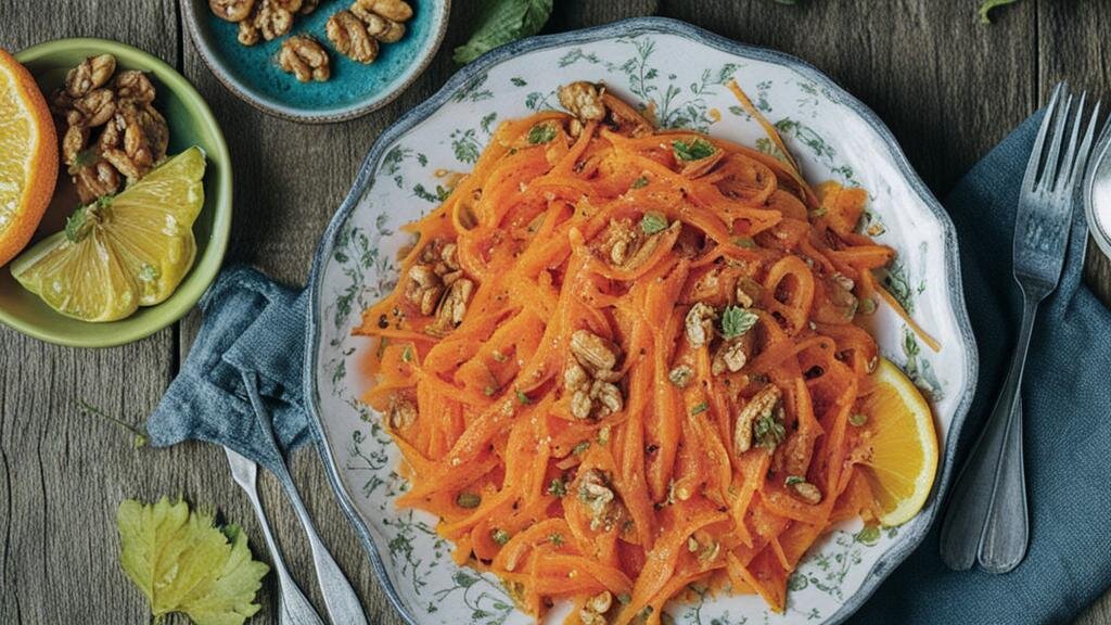 Морковный салат с апельсином и грецкими орехами