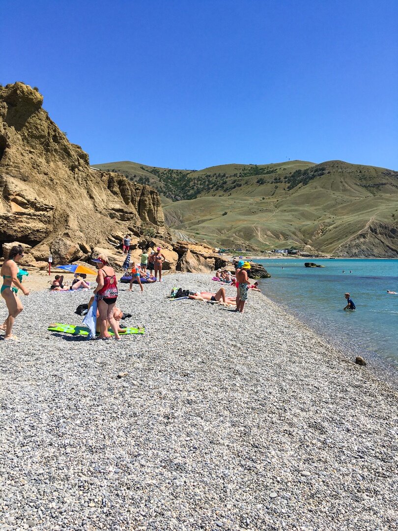 Во время экскурсии из Феодосии в Судак, заглянули на пляж Капсельской бухты. Бухта Капсель — это спокойные дикие пляжи в окружении нетронутой природы. Отличительная особенность бухты — чистейший воздух, мелководье, разнообразное морское дно в небольших бухточках. Некоторые моменты я запечатлел в панорамах 360 градусов. Чтобы просмотреть видео перемещайтесь с помощью мышки на экране монитора. С мобильного для просмотра необходимо зайти в приложение You Tube. Тихий пляж позволяет расслабиться и отдохнуть от городской суеты, насладиться чистым воздухом и лазурного цвета водой. Благо пляж обычно не многолюден. Вода здесь весь сезон остается теплой из-за мелководья. По этой же причине пляж особенно популярен у семей с детьми. Дно на разных участках пляжа может быть песчаное, галечное или каменистое. Один из участков пляжа предусмотрительно огорожен столбиками. В этом месте по водой много металлического мусора, об который можно поранится. Просторный пляж находится между мысом Француженка и