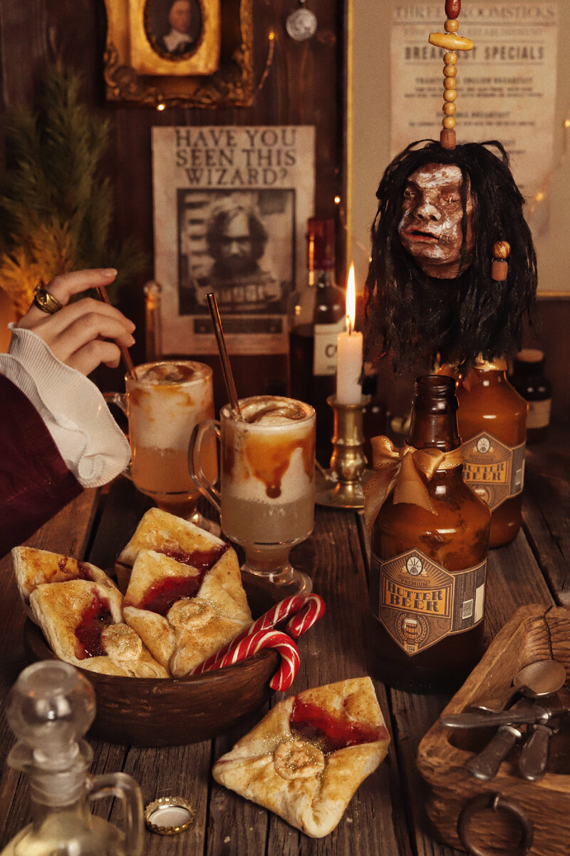Давайте сегодня посетим паб волшебников «Три метлы» и попробуем сливочное пиво от мадам Розмерты. В роли Розмерты в этот раз выступаю я. 😏 Ну а в роли кочерыжки-цанцы выступает мой собственноручно вылепленный «собутыльник» 😅 К этому Новому году я сделала и бутылочное сливочное пиво … и получилось (после пары тестов) очень даже неплохо! Без пены ощущения другие, но получается не менее вкусно. Особенно в охлажденном виде. Обычно я наливала его в кружки 🙂 Знаю, что многим не заходит сладкий вариант, воротят нос от сочетания сливок и газировки. Есть такие, кто делает сливочное пиво алкогольным, нам с мужем такой вариант вообще не подходит. А сладости мы любим:) Поверьте, это правда очень вкусно. Кого бы я не поила своим сливочным пивом, и кто бы не повторял его по этому рецепту — никто не жаловался 😁 Вкус очень насыщенный, свежий и пряный. Итак, приготовление сливочного пива не займёт много времени. И ингредиентов здесь совсем немного: 👉🏻 ириски «золотой ключик» 10-15 шт 👉🏻 К
