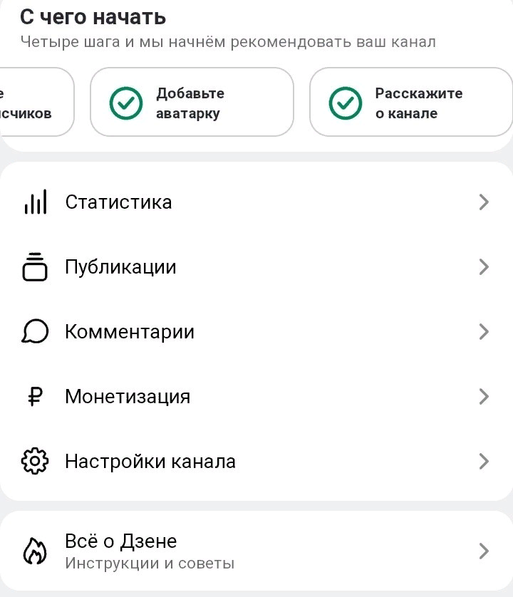 Всем привет! Вы на канале "Попурри о жизни и любви". Сегодня понедельник, а это значит, что самое время начать наше реалити по созданию канала с нуля и попробовать вывести его на монетизацию, что в нынешних условиях удаётся далеко не каждому. Регистрирую новый канал у себя в смартфоне, чтобы удобно было "пилить" контент, особенно, если будет вдохновение. Для подключения монетизации нужно сделать пять шагов: 1. Добавить фото на аватарку. 2. Сделать описание канала. 3. Опубликовать 5 постов в любом формате. 4. Набрать 10 подписчиков 5. Набрать 30 часов просмотров от подписчиков за месяц. Оформляю страничку и публикую одну статью. Посмотрим, сколько она даст просмотров. Ведение нового канала придётся совмещать с основной работой, поэтому блог буду вести на лайте, на чилле, на расслабоне. Это моя стратегия. Продолжение завтра.... Оставляйте вопросы в комментариях.