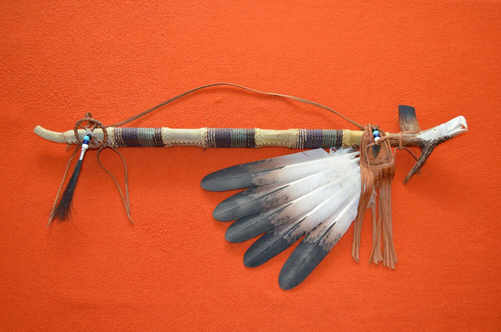 #символика Священная трубка североамериканских индейцев, живущих в верховьях Миссисипи; в Европе он чаще всего именуется «трубкой мира», и, например, в немецком языке выражение «раскурить вместе трубку мира» вошло в поговорку в качестве шутливого обозначения прекращения враждебных отношений уже в первой половине прошлого столетия, прежде всего благодаря книгам Купера и Карла Мая. В действительности же священная трубка была ритуальным и символическим предметом, а также условным знаком посланника, как в европейской античности кадуцей. Белые перья на ней означают мир, красные, наоборот, войну. Впрочем, вопреки обычному словоупотреблению, не всякая индейская курительная трубка может быть названа калюметом в собственном смысле. В своем первоначальном значении калюмет представлял собой парную, дуалистическую систему (небо - мужское начало противостоит земле - женскому началу), причем оба взаимопроникающих принципа могут менять свой смысл (например, у Омаха земля - мужское начало, небо - женс