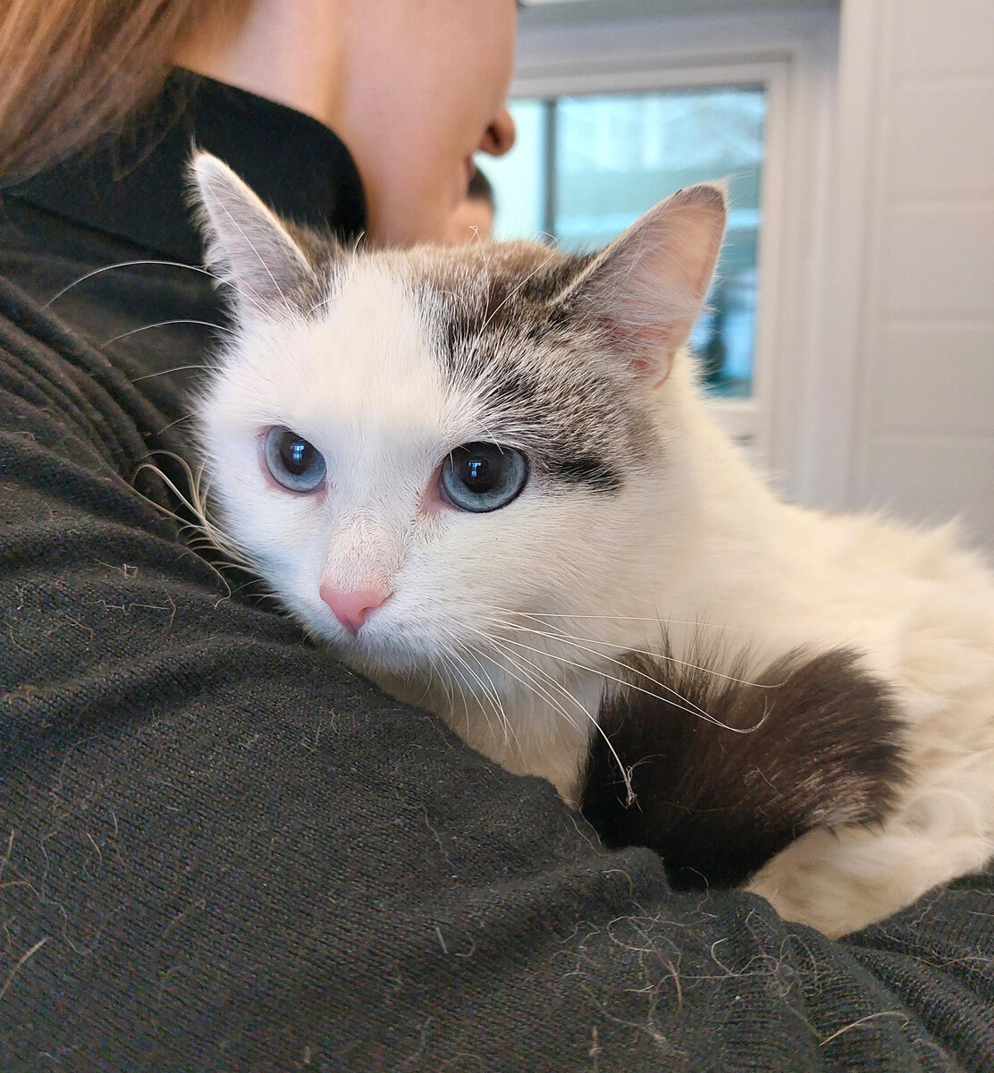 Нежная принцесса, воздушная фея в серебристом длинном платье притягивает внимание всех. Эту чаровницу зовут Синди, она нереальна красива, нежна и воздушна. К некоторому неудовольствию отдельных кошечек, взгляды и восхищение котов нашего приюта направлены только на нее. Синди молодая кошечка, очень скромная и иногда непонимающая причины этого повышенного внимания. Приведя в порядок свою серебристую шубку, поправив темно-серую шапочку на ушках, расчесав свой шикарный темно-серый хвост, Синди поднимает глаза, в которых сквозит удивление и усталость от популярности и обожания мужского кошачьего населения. Но не понимает Синди, что главная причина — это ее глаза. Ярко синие, огромные звезды сверкают на мордочке кошки. И оторвать взгляд уже невозможно от нее. Синди очень ласковая, тихая кошка. Было бы неплохо найти ей своего друга человека, которого она обожала бы и восхищалась также сильно, как восхищаются ей. Среди домашнего уюта Синди за