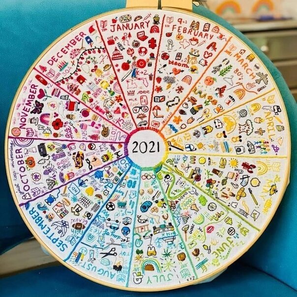 Лучше всего начать с января и каждый месяц вышивать интересные моменты
