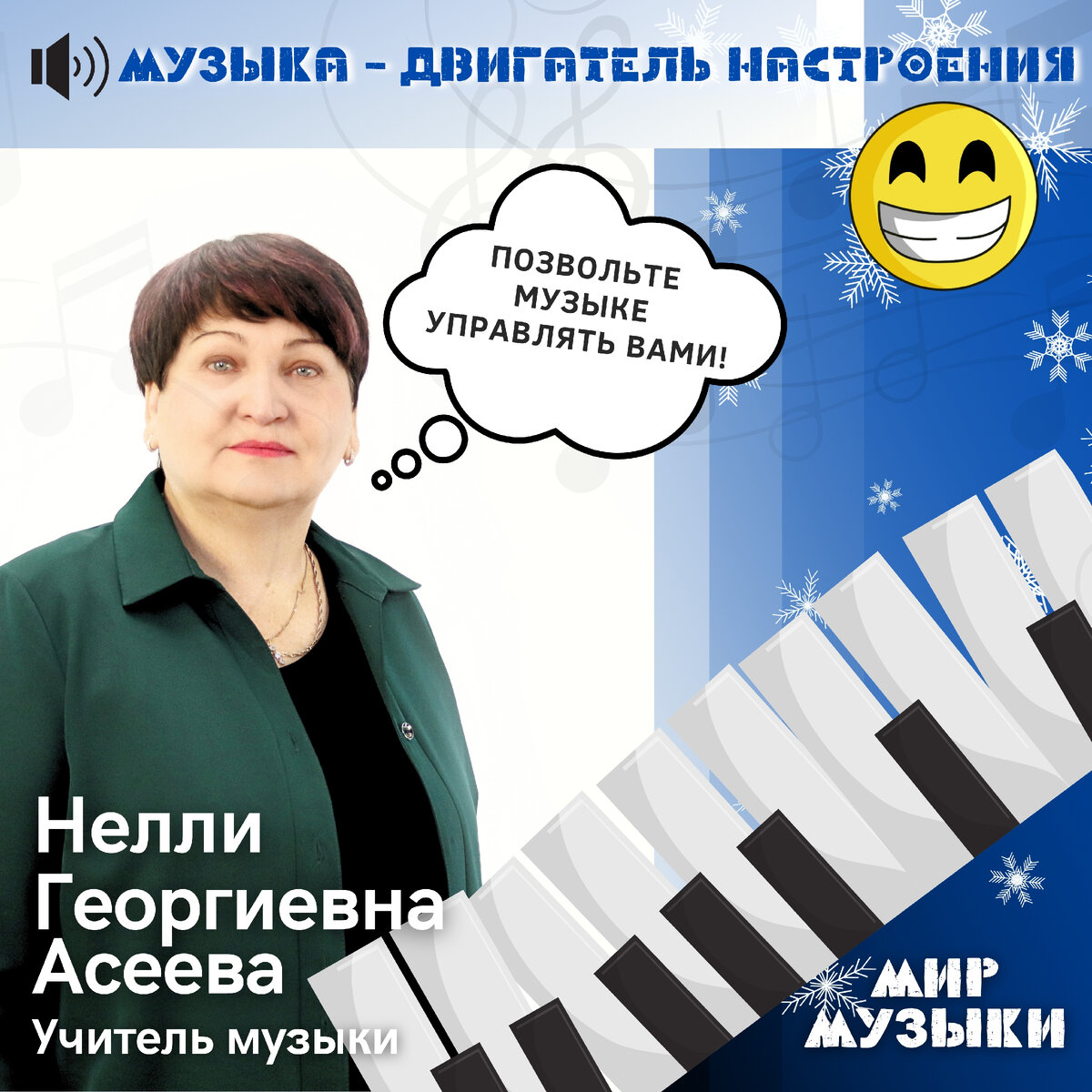 🎵 Музыка с давних пор помогает нам в решении многих проблем, — рассказывает учитель музыки Нелли Георгиевна Асеева.