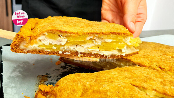 Пирог Выручай-ка! Моментальное тесто без использования яиц, дрожжей и сахара. Пирог на кефире с картошкой и курицей
