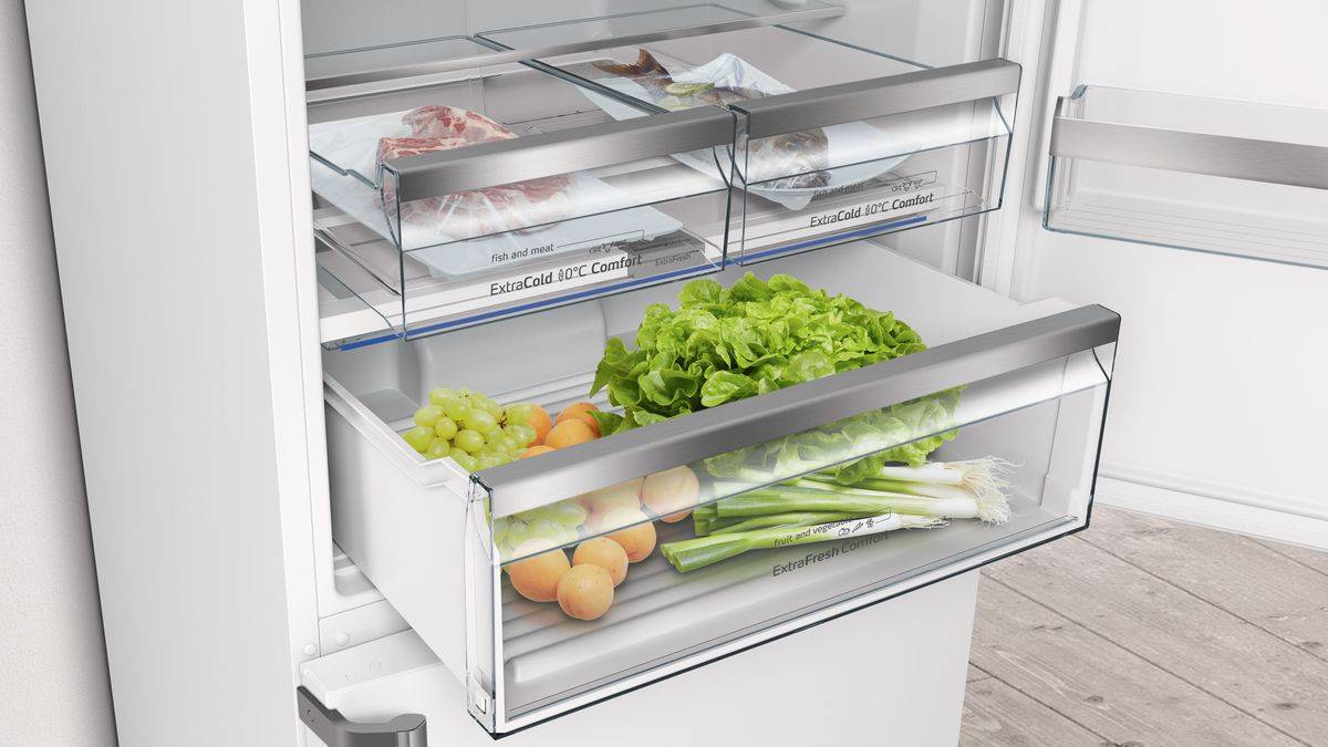 Морозильный отсек, размещенный внизу, обладает ёмкостью 78 литров. Этого пространства достаточно для заморозки большого количества продуктов, и благодаря трем большим выдвижным ящикам, организация хранения становится удобной и эффективной.