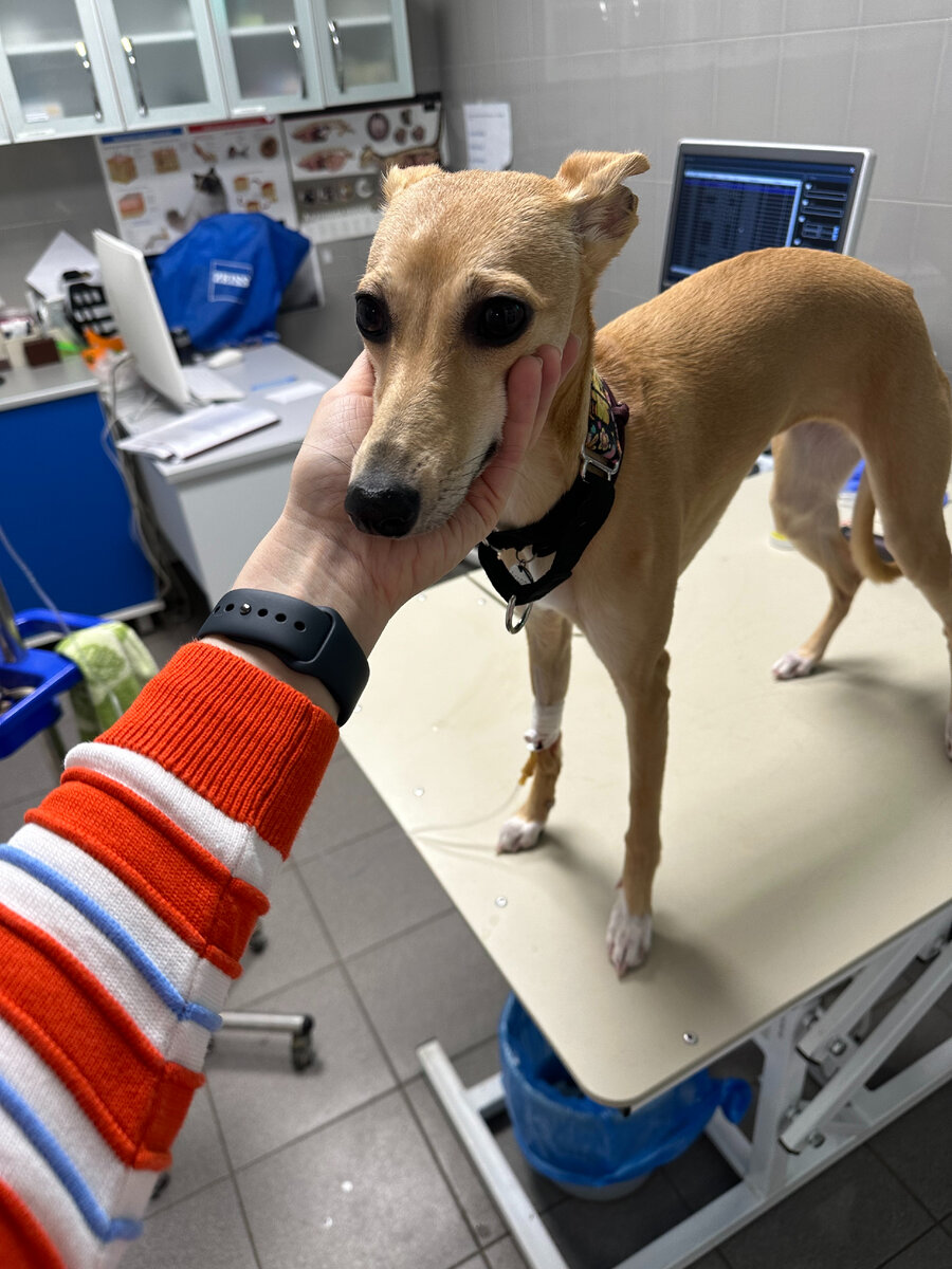 Приехали мы на капельницы, подходит врач, я рассказываю, что наш план с едой провалился. Но надо было проверить, потому что есть собаки, которые на стрессе без хозяина не едят. А тут, как сделал вывод врач, вопрос не в стрессе, а в боли - у Ассоль очень сильно болит живот. И принято решение оставлять собаку, пока ей не станет реально лучше.