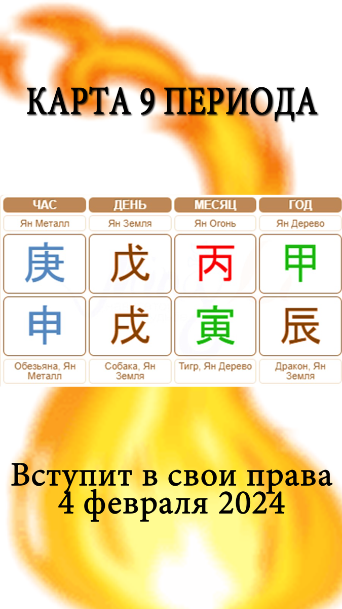 Согласно Бацзы и Фэн-шуй (китайской метафизике) 4 февраля 2024 года наступит 9 период - новая эпоха длиною в 20 лет. Это время с 2024 по 2044 гг совпадает с эпохой Водолея, о которой я уже писала. (ссылка на статьи ниже).