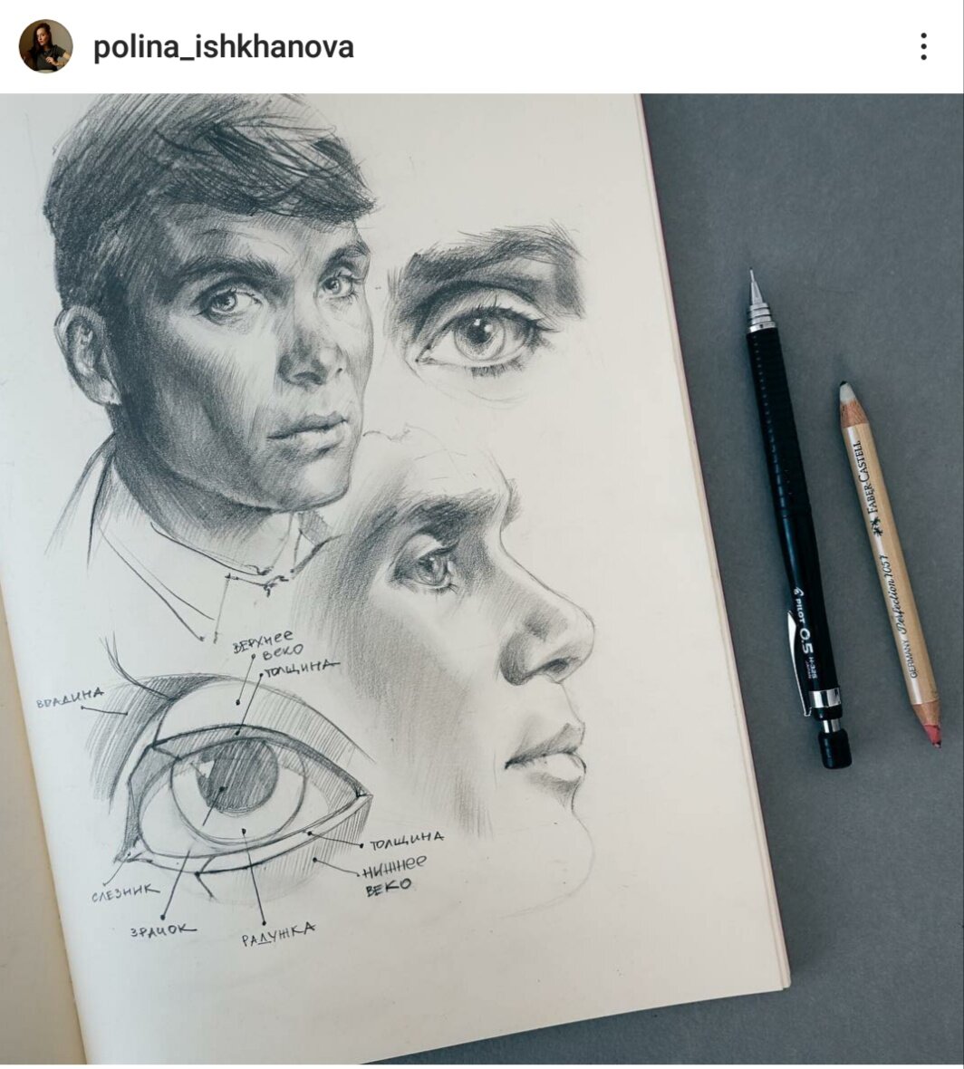 Но для начала напишу почему именно к Полине Ишхановой пошла. Знаю её ещё из школы Вероники Калачевой. Онлайнов по портрету у нее тогда ещё не было, она вела курс в студии. Позже появился портрет в разных техниках. На днях открытых дверей в школе была возможность посмотреть некоторые уроки с разных курсов и можно было понять подходит тебе преподаватель или нет, как объясняет и что. Тогда выбрала курс другой Полины, но только потому что очень хотелось портреты акварелью рисовать. Понять как изображать кожу и волосы. Следила за творчеством Полины Ишхановой в соц.сетях. И мне нравились ее посты с разбором лиц разных людей.