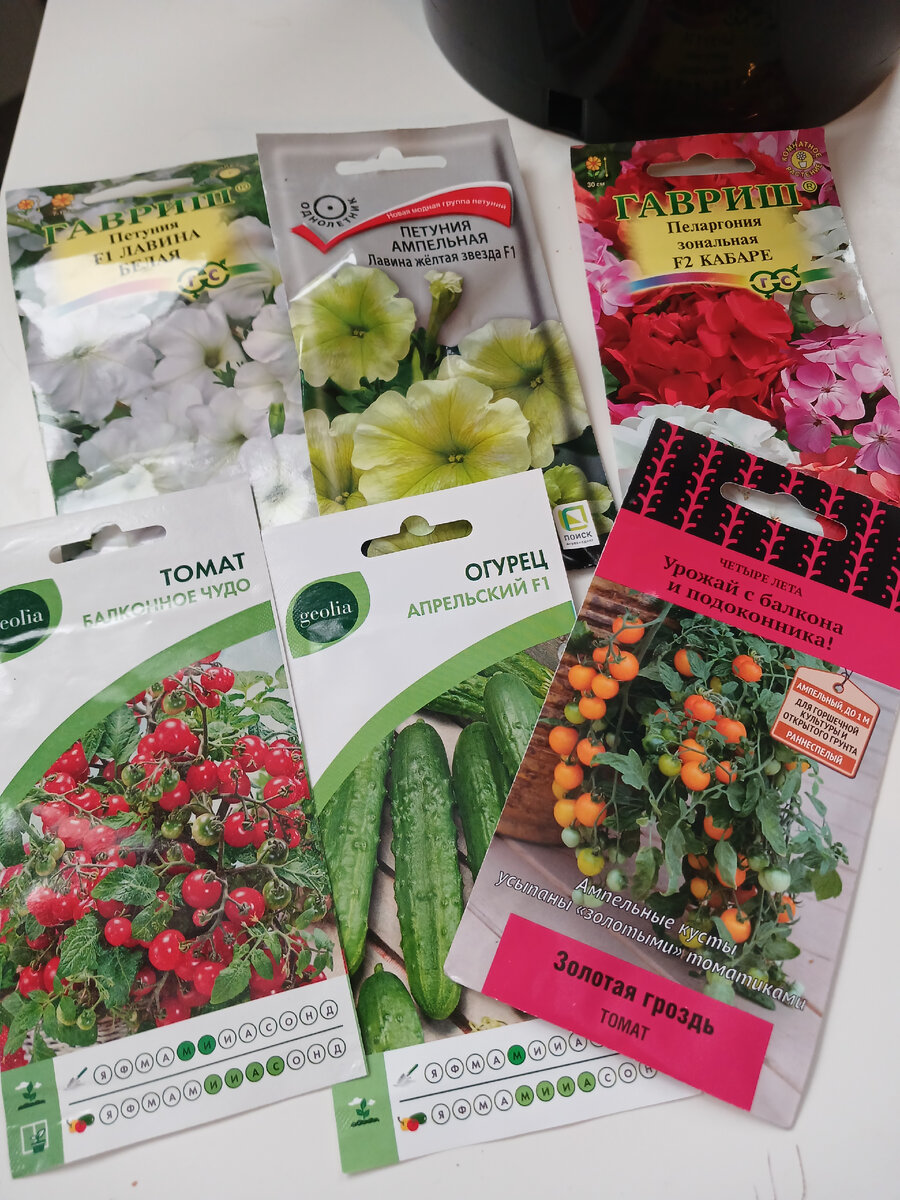 Всем привет, друзья! Пока укладываю младшего, урвала 10 минут черкнуть, что купила в Леруа для посадок. Во-первых, взяла семена петуньи на черенкование. Это уже второй комплект. Первый покупала осенью и куда-то хорошенько спрятала, либо на даче оставила. Петуньи будут белые, жёлтые и фиолетовые (их нашла у себя в закромах). Ещё взяла семена комнатных томатов и огурец Апрельский, хочу сейчас тоже посадить, насмотрелась на сад в подвале без окон у мамы одного моих маленьких учеников. Но поскольку у меня младший сейчас в слишком активном возрасте, долго думала, где организовать место для рассады. Пока организовала так: Стойки для ламп, кстати, тоже взяла в Леруа, в 400 руб обошлись (грабёж, блин, за два куска проволоки!). Ещё взяла удлинитель на три розетки, чтоб эту всю конструкцию подключить и прожектор, вот такой: Кому интересны технические характеристики, вот они Его подключит муж вечером, я с проводами такими не умею. Что ещё. У себя в закромах нашла семена земляники, их тоже сегод