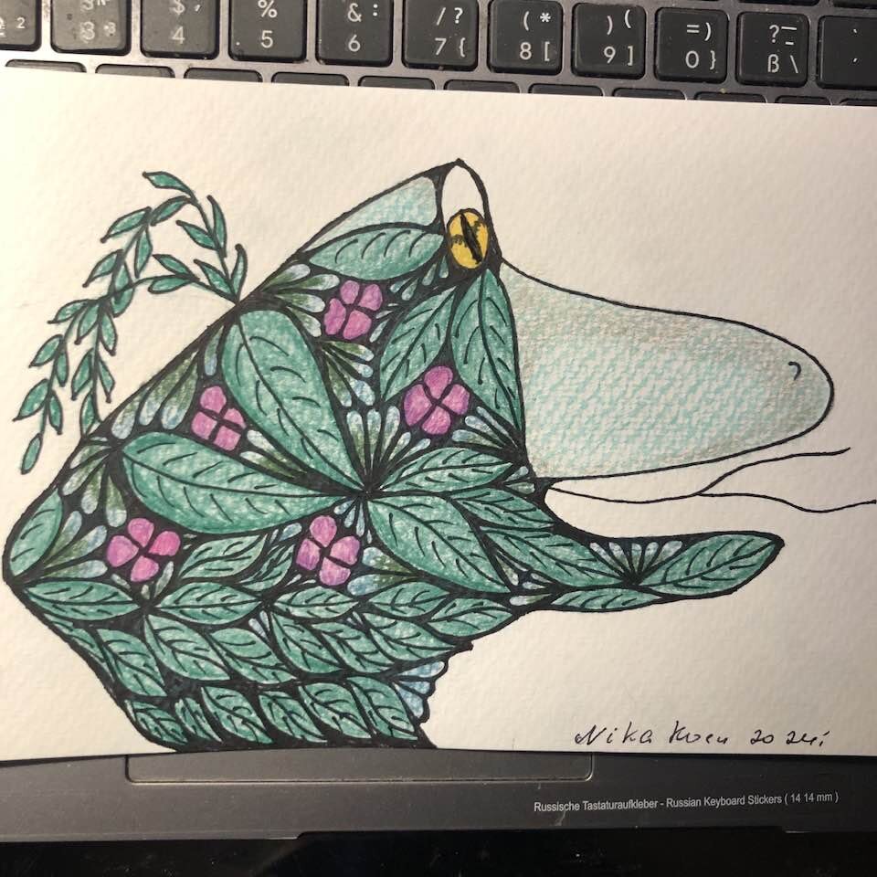 Смеюсь. Тут люди уже написали о страусе с головою в песке. А я увидела большого человека спрятавшего голову в песок. Тревога для всех одна, а восприятие разное. Кто то в песке, кто в засаде, а кому тревожно ну и пох, он как жил так и живет только сердечко стучит бистрее и ушки на макушке.
