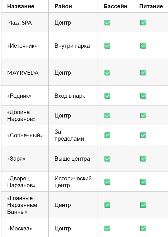 Сделал классную сравнительную табличку с популярными санаториями Кисловодска. Можете пользоваться при выборе санатория для своего отдыха в 2026